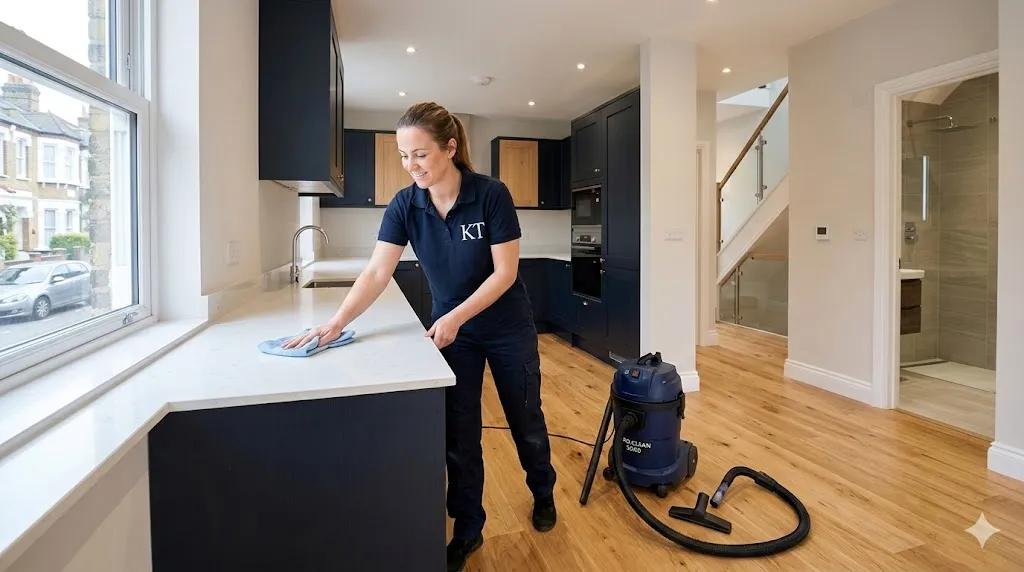 Our post-construction cleaning includes dust extraction, plaster residue removal, window detailing, deep kitchen and bathroom cleaning, and final presentation cleaning to ensure the property is handover-ready.